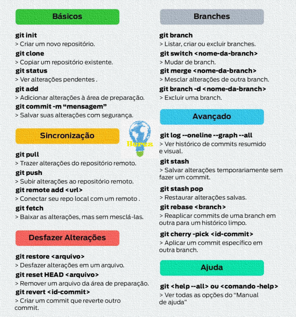 Guia Herez de Comandos Git Completo PiadaMinha favorita: “Meu relacionamento com o Git é igual a um namoro: eu faço