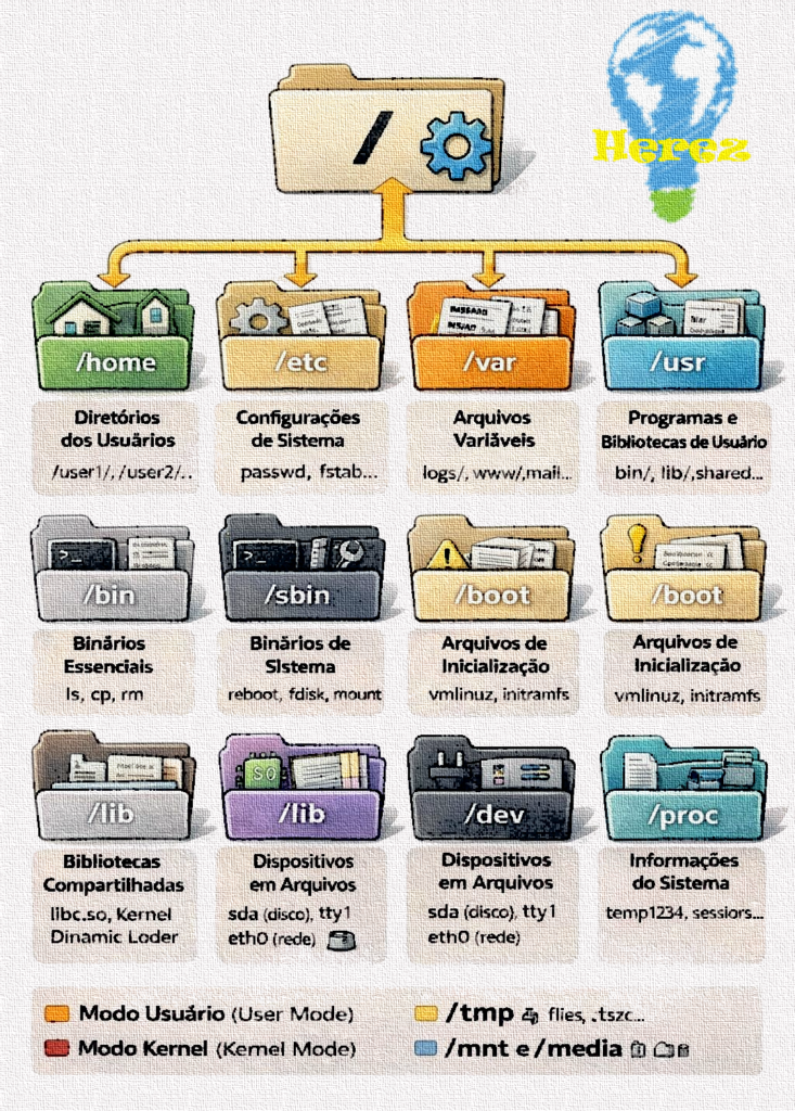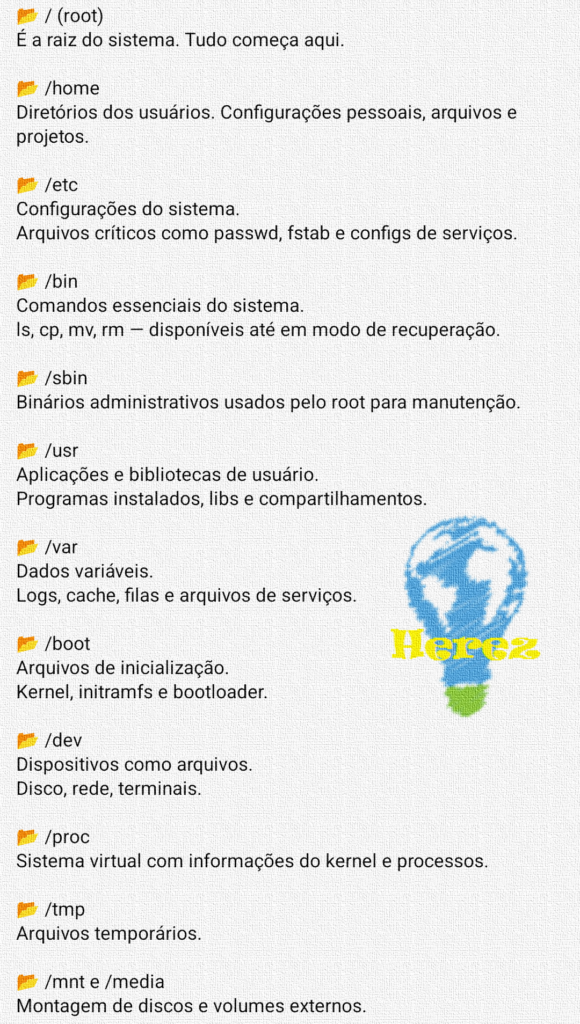 Diretórios essenciais do Linux — Guia Herez completo e prático Aprofundando o conhecimento sobre a hierarquia de Diretórios do Linux